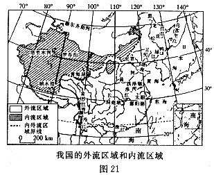 下列两幅地图反映了我国自然地理环境的东西部差异。读图20和图21,回答下列问题。