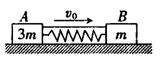 21.如图所示,质量分别为3m和,n的两个物体A和B用一根细绳相连,中间夹着一个被压缩的轻弹簧,在水平光滑地面上以速度讪向右匀速运动,且此时系统的动能是系统弹性势能的3倍.某时刻剪断细绳,在弹簧第一次恢复原长的过程中,下列叙述正确的是