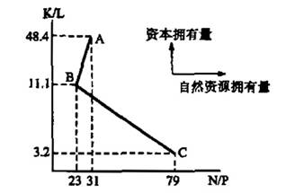 * K/L指资本/劳动力,N/P指每10万人口·平方干柬的自然资源量