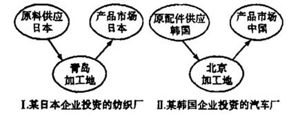 材料三:“日本与韩国企业在中国城市投资办厂示意图”