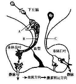 (1)科学家发现,切断C处的联系时垂体的分泌功能未受到影响,说明 ▲ .