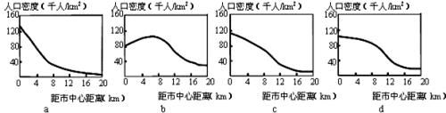 下图是“某城市不同时期人口密度与距市中心距离关系图”,读图回答28-29。