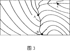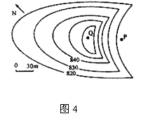 读下图(图4),回答10-12,题图中等高线表示一种风力堆积的地表形态