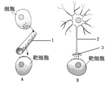 (4)如果图B所示的靶细胞为人体唾液腺细胞,那么从神经调节方式的组成结构来看,[2]应该属于 _▲ 。接受[3]所释放物质的主要是该靶细胞膜上的_▲ 物质。