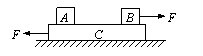 如图所示,两个等大的水平力F分别作用在B和C上,A、B、C都处于静止状态。各接触面与水平地面平行。A、C间___________摩擦力,B、C间___________摩擦力,C与地面间___________摩擦力(均填“有”或“无”)。