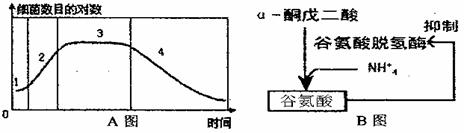 4.用某种培养基培养谷氨酸棒状杆菌,测得其生长曲线如图A所示。谷氨酸是谷氨酸棒状杆菌的