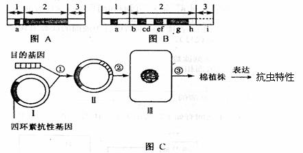 (2)图C中III是导入目的基因的受体细胞,经培养、筛选获得一株有抗虫特性的转基因植株。经分析,该植株细胞中含有一个携带目的基因的DNA片段,因此可以把它看作是杂合子。理论上,在该转基因植株自交产生F1代中,仍具有抗虫特性的植株占总数的 。