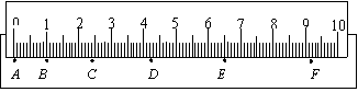 10.在做“匀变速直线运动的研究”的实验时,某同学得到一条用打点计时器打下的纸带,并在其上取了A、B、C、D、E、F等6个计数点(每相邻两个计数点间还有4个打点计时器打下的点,本图中没有画出)打点计时器接的是220V、50Hz的交变电流。他把一把毫米刻度尺放在纸带上,其零刻度和计数点A对齐。![]()