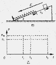 (3)从滑块静止释放瞬间开始计时,请在乙图中画出滑块在沿斜面向下运动的整个过程中速度与时间关系v-t图象。图中横坐标轴上的t1、t2及t3分别表示滑块第一次与弹簧上端接触、第一次速度达到最大值及第一次速度减为零的时刻,纵坐标轴上的v1为滑块在t1时刻的速度大小,vm是题中所指的物理量。