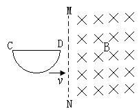 (09山东卷)21.如图所示,一导线弯成半径为a的半圆形闭合回路。虚线MN右侧有磁感应强度为B的匀强磁场。方向垂直于回路所在的平面。回路以速度v向右匀速进入磁场,直径CD始络与MN垂直。从D点到达边界开始到C点进入磁场为止,下列结论正确的是