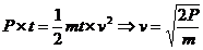 (2)因为探测器对喷射气体做功的功率恒为P,而单位时间内喷气质量为m,故在t时间内,据动能定理可求得喷出气体的速度为:![]()