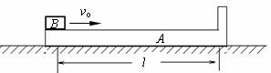 如图所示,在长木板A的右端固定着一个挡板,静止在光滑水平地面上,已知木板(包括挡板)的质量mA=1.5m,小木块B(可视为质点)的质量mB=m.现使木块B从A的左端开始以水平向右的初速度v0在长木板A上滑动,滑到右端时与挡板发生碰撞,已知碰撞过程时间极短,碰撞后木块B恰好能滑到木板A的左端而不脱离木板.设B与A间的动摩擦因数为μ,B在A板上单程滑行长度为l.