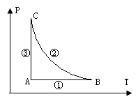 (2)(4分)有一个气缸通过光滑活塞密封有一定质量的理想气体,现让气体做如图所示的状态变化:先经过第①过程从状态A变化到状态B;再经第②过程,从状态B变化到状态C;最后经第③过程,从状态C返回状态A。