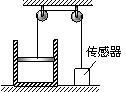 如图所示,导热性能良好的气缸内用活塞封闭着一定质量、常温常压的理想气体,气缸放在水平地面上,一条细绳一端连接在活塞上,另一端通过两个光滑的定滑轮后连接在一个可施加拉力的传感器上,传感器由计算机控制,开始时活塞和气缸均静止。现通过计算机对活塞施加拉力,让活塞缓慢向上移动,发现活塞始终没有从气缸中拉出,周围环境温度不变。则在活塞移动的过程中,下列说法正确的是