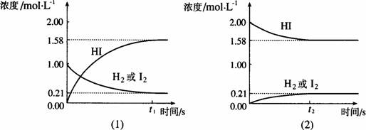 C.图(1) H2的转化率+图(2)HI的转化率=100%