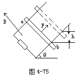 15.两根光滑的金属导轨,平行放置在倾角θ的斜面上,导轨的左端接有电阻R,导轨自身的电阻可忽略不计.斜面处在一匀强磁场中,磁场方向垂直于斜面向上.质量为m、电阻可不计的金属棒ab,在沿着斜面与棒垂直的恒力F作用下沿导轨匀速上滑,并上升h高度,如图4-75所示.在这过程中 [ ]