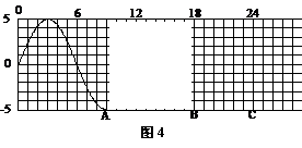 屏上每一小格长度为1cm。在t=0时刻横波发生器上能显示的波形如图4所示。因为显示屏的局部故障,造成从水平位置A到B之间(不包括A、B两处)的波形无法被观察到(故障不影响波在发生器内传播)。此后的时间内,观察者看到波形相继传经B、C处,在t=5.5秒时,观察者看到B处恰好第三次出现波谷,下列判断正确的是