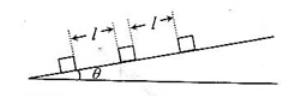 25.(09全国Ⅰ卷)(18分) 如图所示,倾角为θ的斜瓶上静止释放,质量均为m的木箱,相邻两木箱的距离均为l。工人用沿斜面的力推最小面的木箱使之上滑,逐一与其它木箱碰撞。每次碰撞后木箱都站在一起运动。整个过程中工人的推力不变,最后恰好能推着三个木箱匀速上滑。已知木箱与斜面向的动摩擦因数为p,重力加速度为g.设碰撞时间极短,求