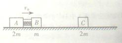 (09宁夏卷)(2)(10分)两质量分别为M1和M2的劈A和B,高度相同,放在光滑水平面上,A和B的倾斜面都是光滑曲面,曲面下端与水平面相切,如图所示,一质量为m的物块位于劈A的倾斜面上,距水平面的高度为h。物块从静止滑下,然后双滑上劈B。求物块在B上能够达到的最大高度。