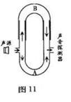(09广东物理卷)(2)图11为声波干涉演示仪的原理图。两个U形管A和B套在一起,A管两侧各有一小孔。声波从左侧小孔传入管内,被分成两列频率