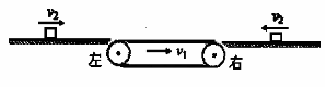 顺时针方向运动,传送带的左、右两端皆有一与传送带等高的光滑水平面,一物体以恒定的速度v2沿水平面分别从左、右 两端滑上传送带,下列说法正确的是: ![]()