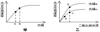 18.下图甲表示A植物光合速率受光照强度影响的变化曲线。图乙表示A植物光合速率在不同光照强度环境条件下,光合速率受CO2浓度影响的变化曲线。b 点与 c 点相比较,b点时叶肉细胞中C3的含量______;a点与c点相比较,c 点时叶肉细胞中的C5含量______。