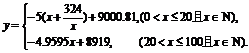 当20<x≤100时,函数y=-4.9595x+8919为减函数,