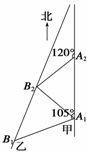 由已知,A1B1=20,∠B1A1B2=105°-60°=45°,