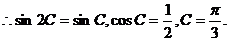 3.(辽宁省沈阳二中2008-2009学年上学期高三期中考试)已知a,b,c为△ABC的三内角A,B,C的对边,向量