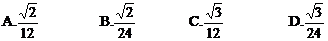 6.(江西省鹰潭市2008届高三第一次模拟) 三棱锥P-ABC的侧棱PA、PB、PC两两垂直,侧面面积分别是6,4,3,则三棱锥的体积是 ( )