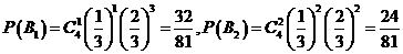B1表示事件“第二次击中目标时,击中第i部分”,i=1,2.