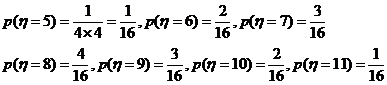 一个盒子里装有4张大小形状完全相同的卡片,分别标有数2,3,4,5;另一个盒子也装有4张大小形状完全相同的卡片,分别标有数3,4,5,6。现从一个盒子中任取一张卡片,其上面的数记为x;再从另一盒子里任取一张卡片,其上面的数记为y,记随机变量
