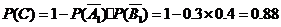 答:甲、乙两人在第一次试跳中至少有一人成功的概率为