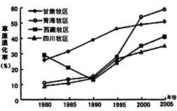 D.2000年,四川牧区和西藏牧区超载面积基本相当