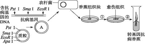 2.(2009福建高考理综,32)(6分)转基因抗病香蕉的培育过程如图所示。质粒上有Pst Ⅰ、Sma Ⅰ、EcoR Ⅰ、Apa Ⅰ等四种限制酶切割位点。请回答: