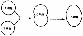 (3)若A细胞为骨髓瘤细胞,B细胞为B淋巴细胞,那么D细胞称为 ,由D细胞连续分裂产生大量细胞的过程运用了____________技术。这种细胞既能无限繁殖,又能产生_________ 。