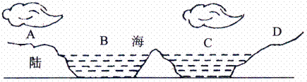 9.下图中A、B、C、D四地位于同一纬度,其昼夜温差最小的是( )![]()