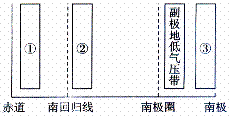 14.读某月某条经线上部分气压带、风带和气流的相关示意图,图中②气压带或风带的气流运![]()
