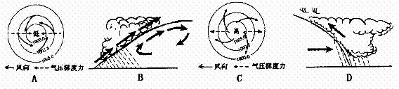 15.若该图表示城市与郊区之间的热力环流,则是( )![]()