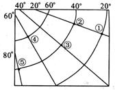 读右图,若一架飞机由图中①地经②地飞往③地,![]()