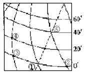 11.一架飞机从甲地(40°N,116°E)出发,以1110千米/小时的速度向正北方向出发后绕经线圈飞行,9小时后到达乙地,则乙地为 ![]()