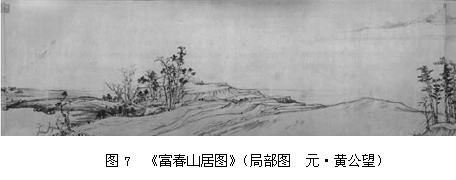 33.中国十大传世名画《富春山居图》(图7),在构图上注重近、中、远景的处理,留有大片空白,形成生动又不乏严谨的结构,使山水布局疏密有致、层次分明、简约利落。这告诉我们: