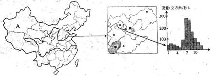 (2)读河流流量柱状图,分析该河3、4、5月径流量小的原因。并请你回答解决该地区灌溉水源不足的主要措施有哪些。(12分)