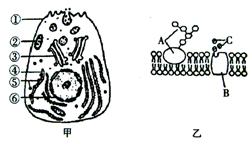 (9分)下图中甲图为动物细胞结构示意图,乙图为生物膜结构示意图,请据图回答相关问题: