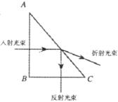 16.如图所示,一细束红蓝复色光与AB边垂直射入等腰直角三棱镜,在AC面上反射和折射分成两束细光束,其中一束细光束为单色光束,若用