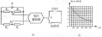 为热敏电阻,它的电阻随温度变化的图线如图乙所示,
