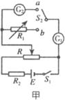 相连,调节滑线变阻器R,当电流表G2有某一合理的示数时,记下电流表G1的示数