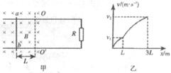 杆在恒力作用下由静止开始向右运动,其速度--位移的关系图象如图乙所示,求恒力F的大小。
