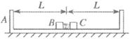 ,现用这两个滑块将很短的轻质弹簧压紧(两滑块与弹簧均不连接,弹簧长度忽略不计),此时B到木槽左端、C到木槽右端的距离均为L,弹簧的弹性势能为