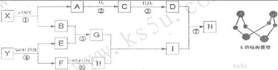 26.(12分)已知A、B、E是常见的非金属单质,其中A为淡黄色固体,Y是常见的金属单质,C的相对分子质量比A大32,D、G均是重要的工业产品,Y、F、H、I均含有同种元素。X含有两种元素,具有摇篮形的分子结构,球棍模型如图所示。I为白色胶状沉淀。图中部分反应条件和产物已略去。试回答下列问题